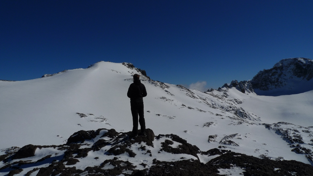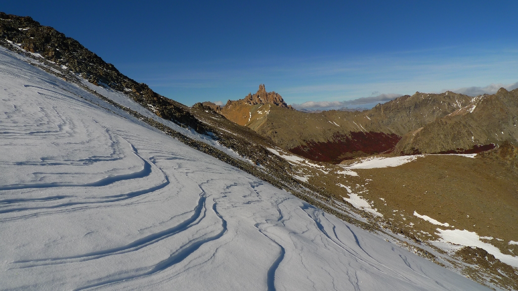 Vsetko doposial nakumulovane neprajne pocasie bolo vykompenzovane tretim dnom, ktorym nas Panbozko obdaril prave na tomto mieste. 6 hodin dna sme stravili v objati snehu vo vyske 1500-2100 mnm , obchadzali Lago Azul po hrebenoch, ladovci, smykali sa po zadkoch a strmhlav bezali dolu svahmi, kde nikdy nebudu existovat ziadne oznacene turisticke chodnicky. Bol to 100% zazitok, uzas plny detskej radosti a doposial nas najkrajsi den treku pocas celeho 40 dnoveho pobytu v Patagonii.