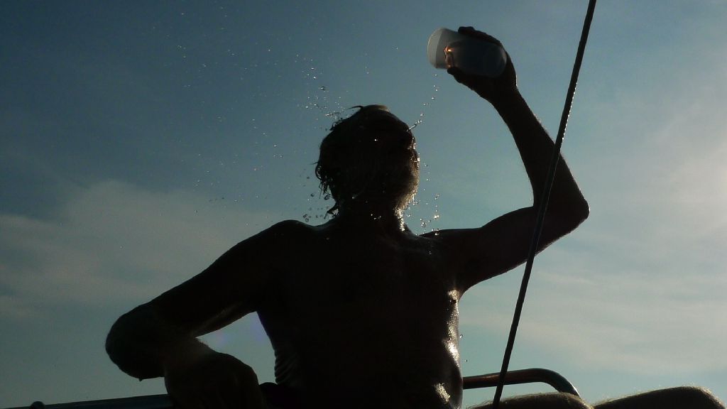 Na pirata z Karibiku zdaleka nemam, no z blizka sa uz tak sam citim. Lod je malicka na to, aby mala sprchu a z vodovodneho kohutika vypumpujete v zlom pocasi stejne prevazdne len hrdzavu vodu. Plachetnica za 5 dni nezastala ani raz. Cely ten cas mame preto namiesto sprchy pohar a oblievame sa slanou vodou. Mydlo moc nezabera a vlasy mam akoby som ich umyl slnecnicovym olejom.