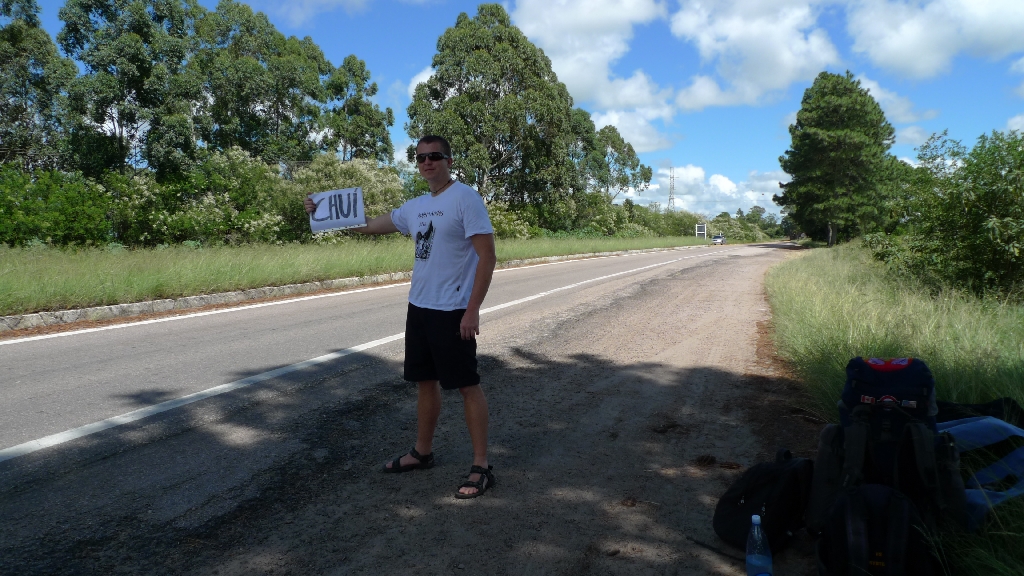 Florianopolis bolo v Brazilii posledne mesto na nasom itinerari. Po skoro tyzdni sme 6.3. vzali bus a celu noc precestovali az do Rio Grande (juh Brazilie). I po 1100km stravenych v autobuse sme boli stale zhruba 250km od brazilsko-uruguayskeho hranicneho prechodu Chui/Chuy. Do najblizsieho autobusu smerujuceho do Uruguaya sme mali skoro 3 hodiny, z ktorych 2 sme vyuzili na autostop. To moc neslo, tak po obede pokracovali opat autobusom. Aj ked na stope neuspesni, za zazitok to stalo, humoru sme mali a len potvrdzujem, ze stopovanie v Brazilii je ozaj nelahke.