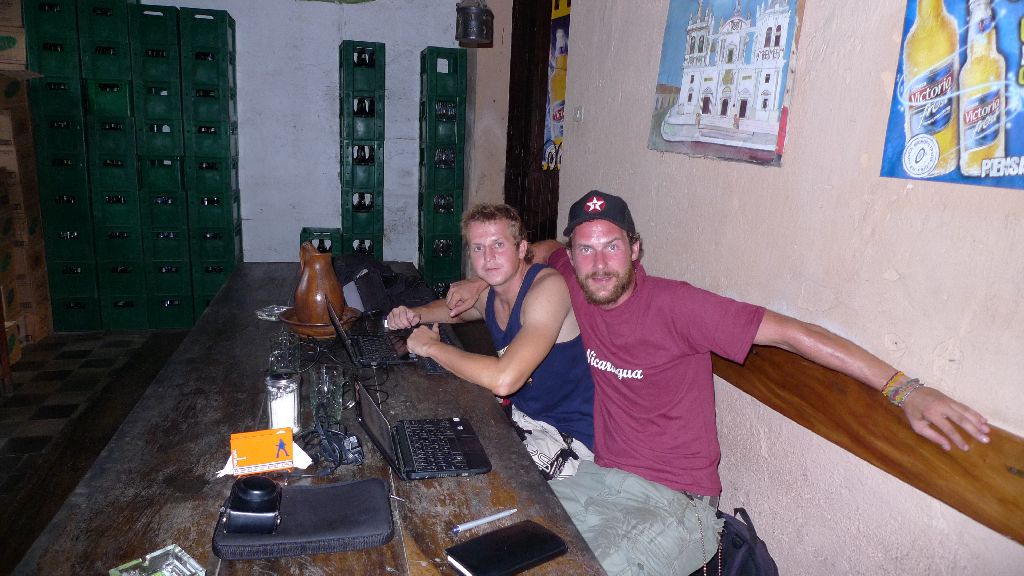Do Chinandegy dorazame tesne po zotmeni. Vita nas na prvy dojem nie najfun mesto. Teenageri na skatoch, rollerbladoch a ich blbe pokriky na dvoch gringov kracajucich poloserom. Nachadzame do par minut hostel, nechavame veci na nezavretelnej izbe a ideme sa rychlo co najblizsie najest. Do hodky zapiname fen, v izbe mame dokonca i TV, co potesilo a uzavrelo nasu narocnu spolocnu (zatial) 3-oj dnovku.
